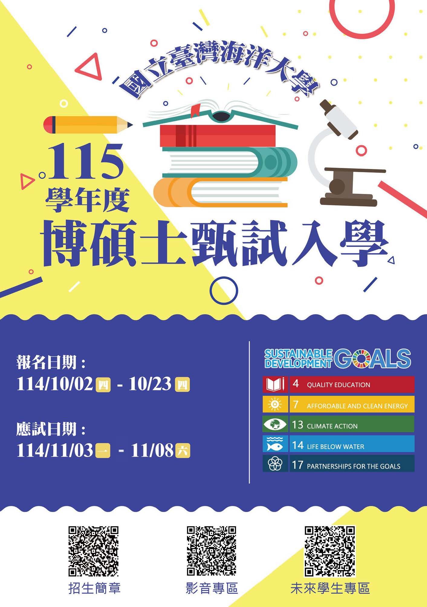 國立臺灣海洋大學115學年度碩士班招生考試入學招生簡章(點我連結)